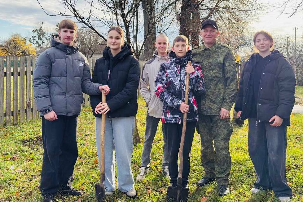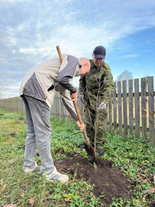 В первый день осенних каникул инициативная команда учащихся 7, 9, 10 классов второй городской школы по руководством руководителя по военно-патриотическому воспитанию Кушнера Д.М. высадили 15 саженцев садовых деревьев на школьном участке.