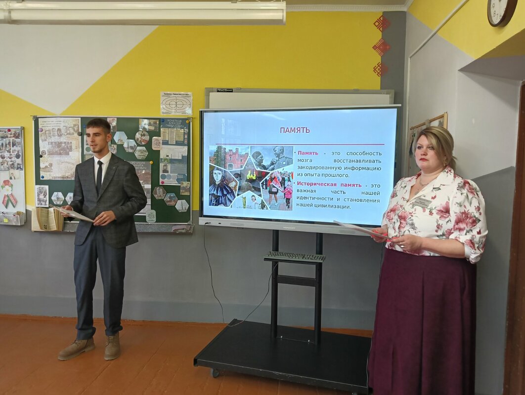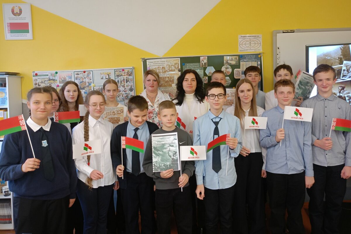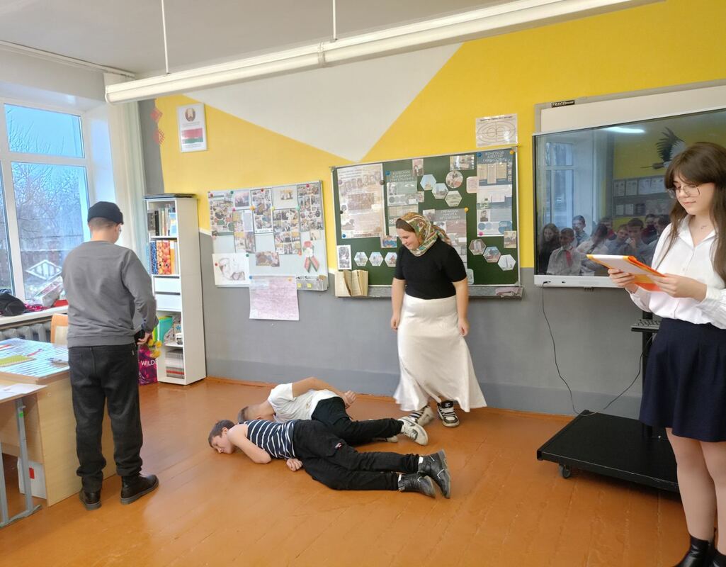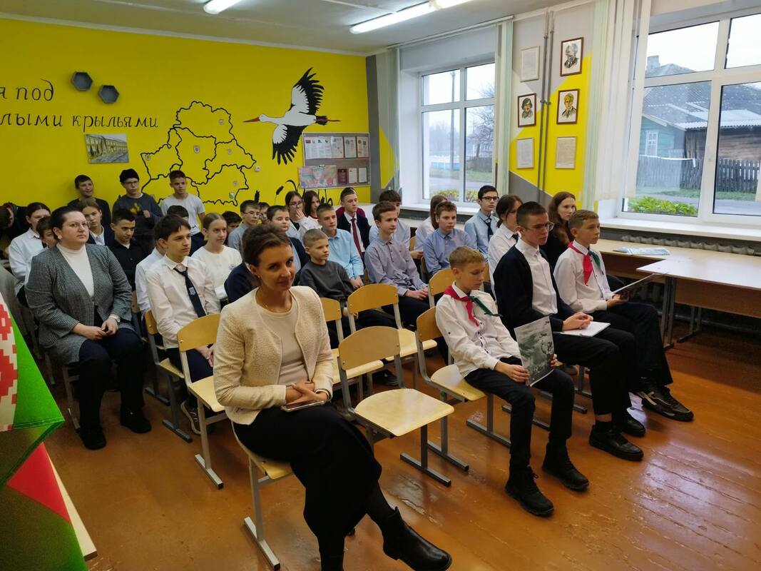 По уже сложившейся доброй традиции наша школа в эти памятные дни радушно принимала гостей — учащихся городской гимназии и третьей школы. Для ребят 7-9 классов состоялось торжественное мероприятие, посвящённое Дню освобождения города Хойники от немецко-фашистских захватчиков. Программа была очень насыщенной и трогательной: мы соприкоснулись с суровой историей: узнали о судьбах настоящих людей, расстрелянных в те страшные годы. С большим вниманием были заслушаны исследовательские работы учащихся. Особенно проникновенными стали выступления семиклассников, которые декламировали и инсценировали стихи о войне. К ним присоединился и учитель, организовавший мероприятие, прочитав одно из лучших стихотворений о войне. В память о павших героях была объявлена минута молчания.