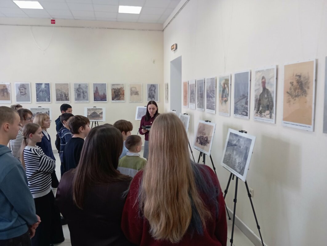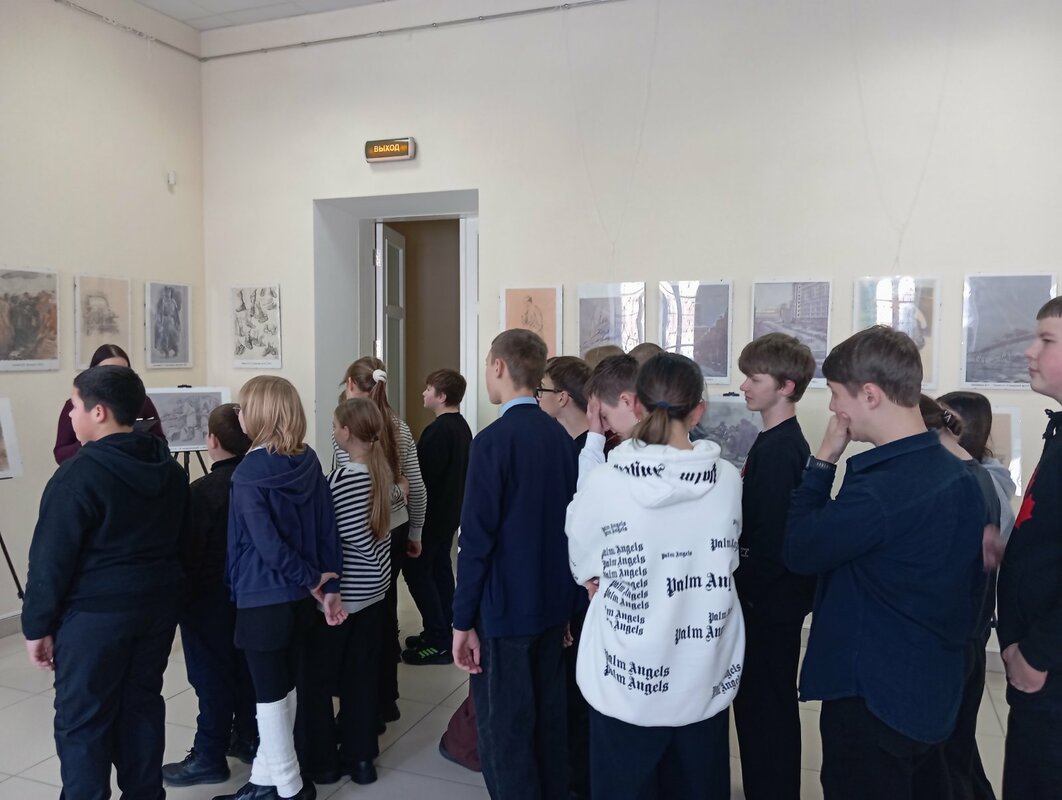 Учащиеся 9 и 6 классов посетили выставку "Фронтовой рисунок" в районном краеведческом музее. С интересом послушали экскурсовода, которая рассказала о том, что даже в тяжёлое военное время художники не очерствели душой и всегда находили минутку для своего творчества.