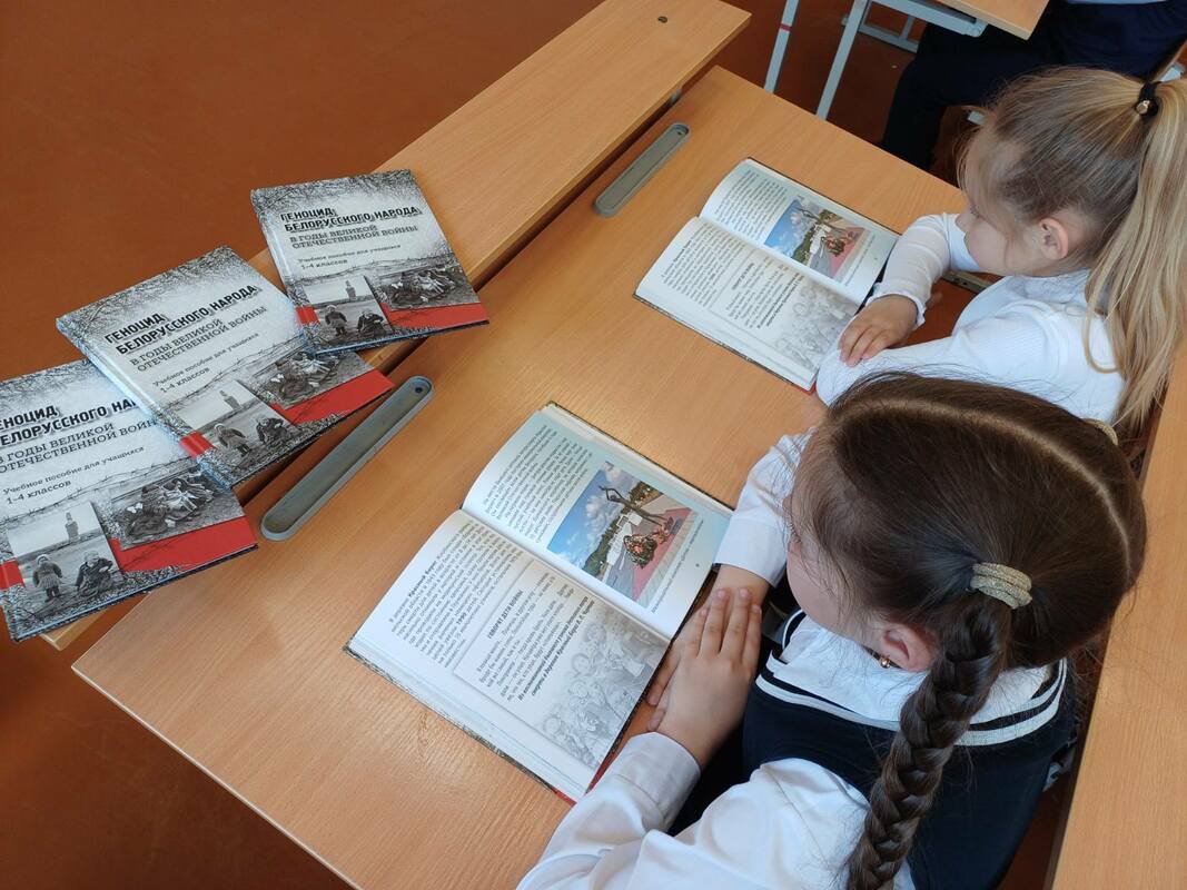 В рамках гражданско- патриотического воспитания для учащихся 3 и 4 классов был проведен информационный час с использованием учебного пособия «Геноцид белорусского народа в годы Великой Отечественной войны"