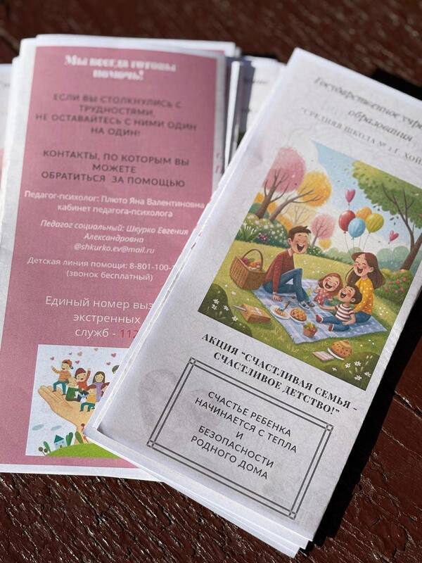 В рамках межведомственной профилактической акции «Счастливая семья — счастливое детство» социальным педагогом школы Шкурко Е.А. были разработаны и изготовлены тематические информационные буклеты для родителей.