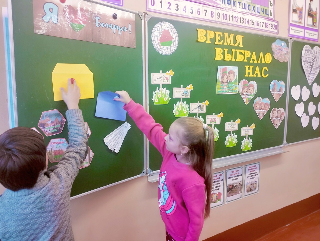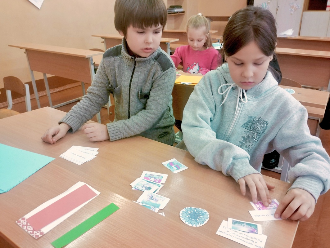 В процессе работы дети с увлечением делились друг с другом историями о любимых уголках города, вспоминали, где любят гулять с семьей, восхищались живописной природой Хойникского района, символами нашего края.